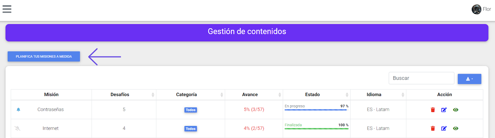 4. Para planificar una misión, haz click en el botón “Planifica tus misiones a medida”