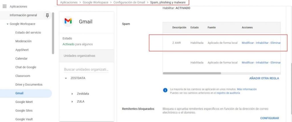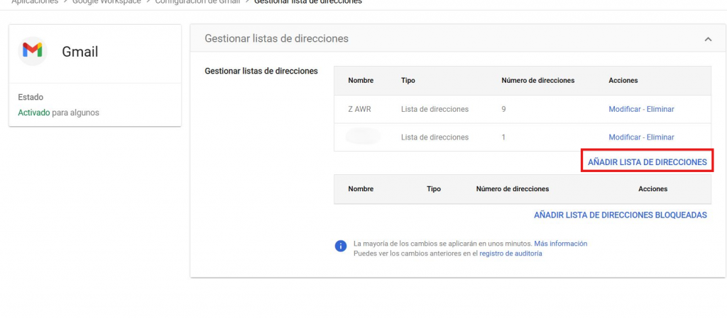 Configurar lista blanca en Google Workspace (ex G Suite)