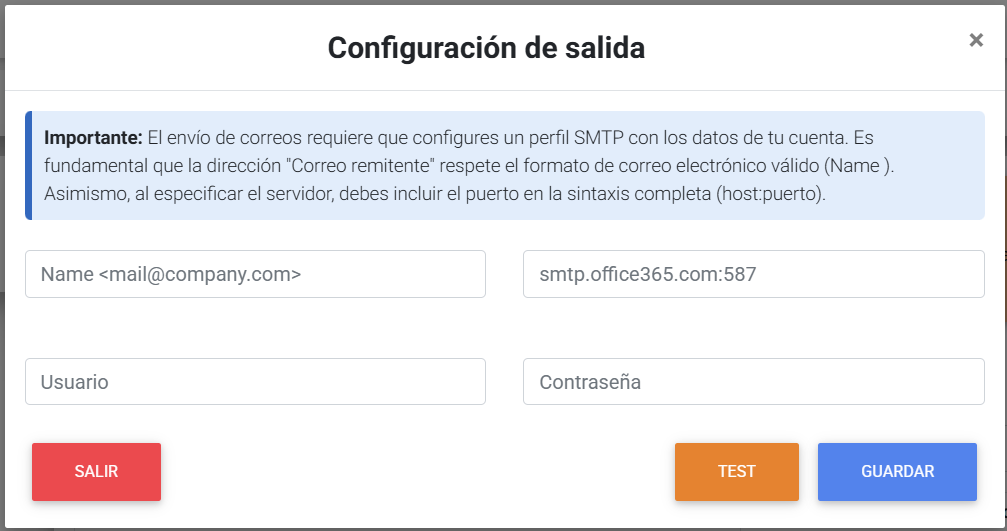 - Indique el nombre y el correo del remitente desde donde se enviarán los mensajes a los usuarios